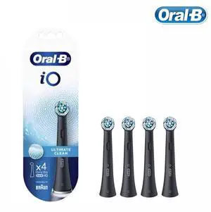 For Oral B iO Ultimate Clean Electric Toothbrush Head, Twisted & Angled Bristles for Deeper Plaque Removal, Pack of 4 , Black