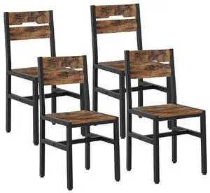 Dining Chairs Set of4, Rustic Wooden Kitchen Chairs with Backrests and Metal Frame, Modern Farmhouse Dinner Chairs for Kitchen, Easy Assembly, Living Room, Dining Room, Rustic Brown and Black