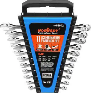 HORUSDY 11-Piece Sae Wrench Set | Combination Wrench Set with Organizer | 12 Point | 1/4" - 3/4" | Chrome Vanadium Steel