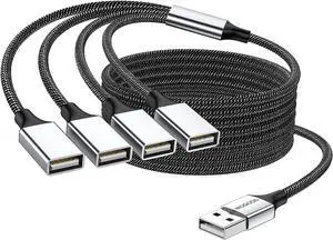 JoyReken 4-Port USB 3.0 Hub, FlyingVHUB USB Hub Tower with 2 ft Extended Cable,USB Splitter for Laptop,PC,PS4,PS5,Xbox,Mouse,Keyboard, Flash Drive, U-Disk (Black)- Model #: VINIUSIKI476984824985NIUCA