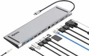USB C Docking Station Quad Display, 14-in-1 Laptop Docking Station Dual Monitor, 8K@30Hz DP, Dual 4K@60Hz HDMI, VGA, 5 USB Data Ports, 100W PD, Ethernet, SD/TF, Mic/Audio, USB C HUB, Thunderbolt Dock- Model #: VINIUSIKI476984835257NIUCA