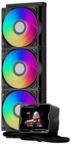 PCCOOLER Liquid CPU Cooler ARGB Display, 360mm AIO with 2.8-Inch LCD Screen, Ceramic Bearing Pump, 3120mm ARGB PWM Fans, Aluminum Radiator, Intel LGA 1851/1700 & AMD AM5 Compatible(GT360M Black)