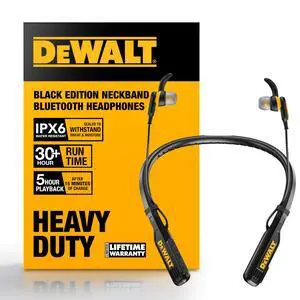 DEWALT Heavy Duty Magnetic Bluetooth Neckband Headphones, Wireless Around the Neck Earbuds w/30H Runtime+Noise Isolation, HandsFree Magnetic Wireless Earphones w/Mic Bluetooth Headsets - Black Edition