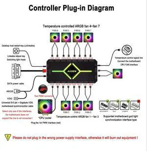 AUSEN 4Pin PWM Temperature Control Hub ARGB Shenguang Synchronous Chassis Fan Suitable For Universal Computer Regulator