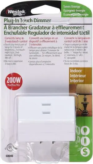 Westek 6004B 200W 3-Level Touch Lamp Plug-in Dimmer, White