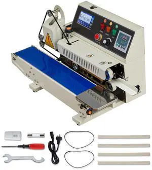 Continuous Bag Band Sealing Machine, 0.24-0.47 in Seal Width, Horizontal Band Sealer Machine with Ink Printing, Temp & Speed Adjustable, Heat Sealing Machine for 0.001-0.03 in Plastic Bags
