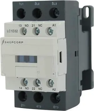 30 Amp, 3 Pole Normally Open and Auxiliary 1NO/1NC Contactor Motor Load 32A and Lighting Load 50A | IEC 660V, 110-120VAC Coil with Mounting Base for DIN Rail (2 Pack)