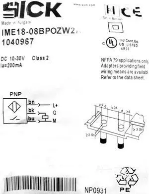 SICK IME18-08BPSZW3K Inductive proximity sensors ,PNP,New