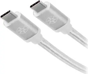 Silverstone CPU06S-1000 Silver USB 3.1 Gen 2 Type-C to Type-C with E-marker IC and support PD function cable,1 meter, Nylon Braided