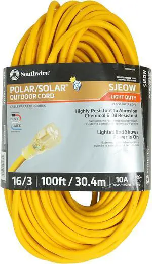 Coleman Cable 01289 16/3 100-Foot Insulated Outdoor Extension Cord with Lighted End
