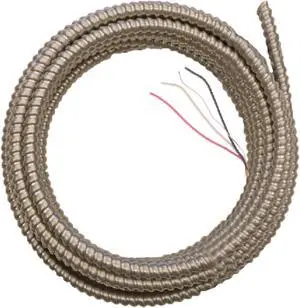 Southwire 68579222 14/2 Type 50-Feet 14-Gauge 2 Conductors MC Solid Metal Clad Cable with Aluminum Armor and Green Insulated Ground Wire ; Grey