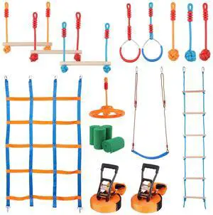 Ninja Warrior Obstacle Course for Kids, 2 x 56 ft Weatherproof Slacklines, 500lbs Weight Capacity Monkey Line, Outdoor Playset Equipment, Backyard Toys Training Equipment Set with 12 Obstacles