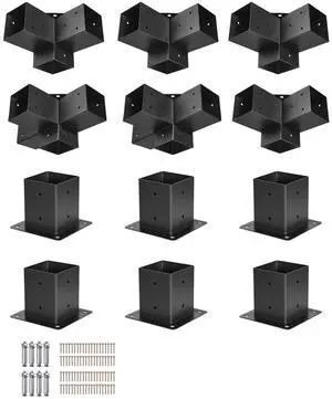 Pergola Kit, 4x4 Inch Pergola Brackets for 3.5x3.5 Inch Wood Beams in Actual Dimension, 3-Way (4 Pcs) and 4-Way (2 Pcs) Gazebo Brackets with 6 Post Bases, for Outdoor Pergolas, Gazebos, Sheds