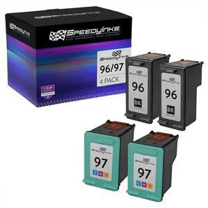 SPEEDYINKS Remanufactured Ink Cartridge Replacement for HP 96 & HP 97 (4 Pack - 2 Black, 2 Tricolor) for use in OfficeJet, DesignJet, Photo Smart and DeskJet