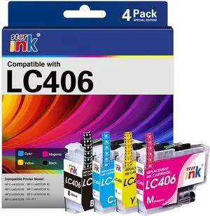 LC406 Ink Cartridges Compatible Replacement for Brother LC406 LC406XL Work for Brother MFC-J4335DW MFC-J5855DW MFC-J4535DW MFC-J6555DW MFC-J6955DW Printer (4 Pack, Black, Cyan, Magenta, Yellow)