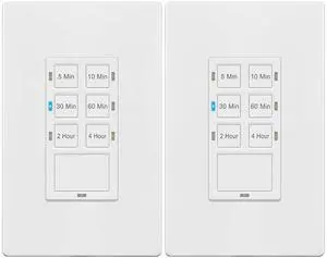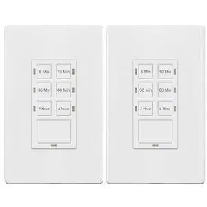 TG 4 Hour Countdown Timer Switch, 5-10-30-60 Min, 2-4 Hour, in Wall Timer Switch for Bathroom Fans, Lights, 120VAC Neutral Wire Required, UL Listed, White, 2 Pack