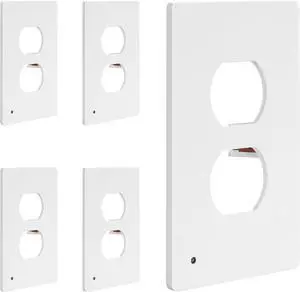 TOPGREENER Guide Light Wall Plate, Screwless Duplex Outlet Cover with LED Night Light, Mid-Size 1-Gang 12.4cm x 7.89cm, Unbreakable Polycarbonate Thermoplastic, ETL Listed, White, 5 pack(Not for GFCI)