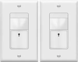TOPGREENER PIR Motion Sensor Light Switch, Occupancy & Vacancy Motion Sensor Switch, , No Neutral Wire, Single Pole, TDOS5-HL-W-2PCS, White