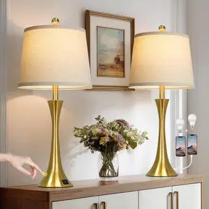 27.5" Table Lamps Set of 2, Touch Bedside Lamps with USB C+A PortsGold
