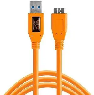 TetherPro USB 3.0 SuperSpeed Micro-B Cable, 15 feet, High-Visibility Orange