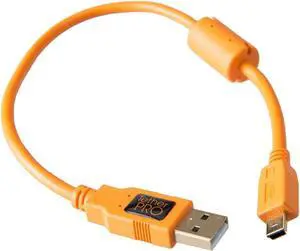Tether Tools TetherPro 1' USB 2.0 A Male to Mini-B 5-Pin Gold Plated Cable, Hi-Visibility Orange