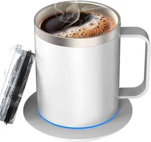 Electric Heated Cup with 10Hrs Auto Shut Off,USB Powered Smart Mug Warmer Set,12oz,Self Heating Coffee Mug for Desk (White)