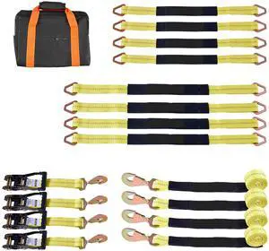 Wheel Chock Tie-Down Kit, Tire-Style Tow Dolly Strap, Car Tie Down Kit with Heavy-Duty Hook, Break Strength 10009 lbs & Working Load 3333 lbs Motorcycle Tie-Down System with O-Ring for ATV, SUV