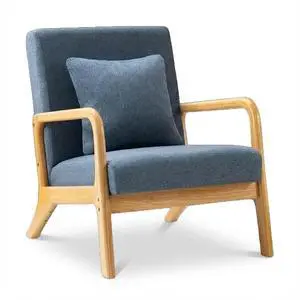 Toytexx Inc Mid-Century Modern Accent Chair, Solid Wood Frame Upholstered Armchair with Wide Cushioned Seat & Removable Cover for Living Room or Bedroom - Blue