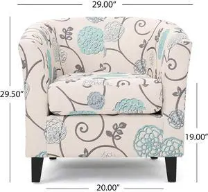Toytexx Inc Upholstered Accent Chair, Floral Tub Chair with Padded Seat, Compact Barrel Armchair for Living Room, Bedroom, Reading Book