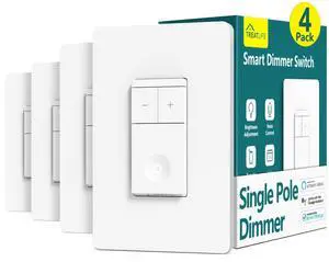 TREATLIFE Smart Dimmer Switch, Single Pole Smart Light Switch, Works with Alexa and Google Home, Neutral Wire Needed, 2.4Ghz Wi-Fi, Schedule, Remote Control, FCC Listed, 4 Pack