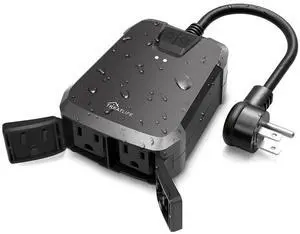 TREATLIFE Dual Outlets Outdoor Smart Dimmer Plug, 2 Individual Dimmable Control Sockets, 600W, Compatible with Alexa & Google Home, IP64 for String Lights, Floor Lamp, Table Lamp