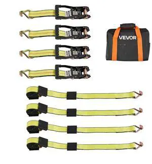 VEVOR Wheel Chock Tie-Down Kit, Deck-Style Trailer Tie Down Strap, Car Tie Down Kit with J-Hook, Break Strength 10009 lbs & Working Load 3333 lbs Motorcycle Tie-Down System for SUVs, Trailers, Trucks