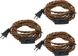 uxcell 15Ft 18/2 Cloth Covered Lamp Cord with Plug, 3 Pcs Vintage Electrical Lamp Cord with Stripped Ends for Extension Wiring DIY Repairing, Light Brown