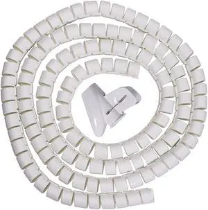 10mm Flexible Spiral Tube Cable Wire Wrap Computer Manage Cord White 3ft w Clip