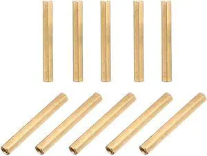 M3x60+6mm Male to Female Hexagonal Standoff Spacer Nuts Washers Brass Tone 10pcs