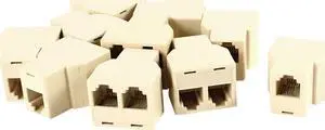 Unique Bargains RJ11 6P4C Female-2 Female Telephone Splitter Connectors Adapter Beige 10 Pcs