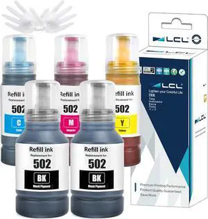 LCL Compatible for 502 T502 T502120 T502220 T502320 T502420 (5-Pack, 2Black Pigment 127ML, CMY Dye 70ML) Ink Bottle for Ecotank ET2760 ET-4760 ET2750 ET-3760 ET-2850 ET-15000 ST-4000 ST-2000 ET-3710