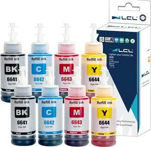 LCL Compatible Ink Bottle for 664 T6641 T6642 T6643 T6644 T664120 T664220 T664320 T664420 (8-Pack 2Black 2Cyan 2Magenta 2Yellow) for Expression ET-2500 ET-2550 ET-2600 ET-2650 ET-16500 ET-4500