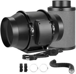 Inline Duct Fan, 6 in Quiet Inline Exhaust Fan, 180 CFM Ventilation Fans with Built-in Filter & Speed Controller, High Air Flow, AC-Motor Vent Blower Fans for Indoor Grow Tents Basement