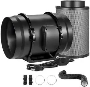 Inline Duct Fan, 8 in Quiet Inline Exhaust Fan, 180 CFM Ventilation Fans with Built-in Filter & Speed Controller, High Air Flow, AC-Motor Vent Blower Fans for Indoor Grow Tents Basement