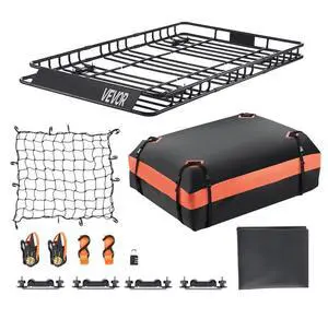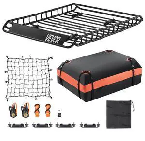 VEVOR Roof Rack Basket, 51 x 36 x 4.1 in, Universal Rooftop Cargo Carrier with 1120 x 870 x 260 mm Cargo Bag, Net, Ratchet Straps, 200 lbs Max Load Capacity Car Top Luggage Holder, for SUV Truck Car