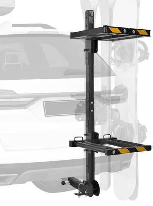 VEVOR Folding Hitch Mounted Ski & Snowboard Rack, Fits 2-Inch Receiver, Carries up to 6 Pairs of Skis or 4 Snowboards, Adjustable Hitch-Mounted Rack for Car with Key Lock, Security Strap, Tilt Access