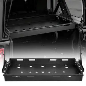 VEVOR Rear Trunk Cargo Rack, for 2018-2024 Jeep Wrangler JLU Sky One-Touch Power Top, 300 lbs, Carbon Steel Basket Tray Interior Storage Luggage Carrier with Net, Shelf Stand Organizer for Camping
