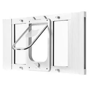 Cat Door for Window, Adjustable to Fit Window Width 35"-40", 4 Secure Lock Modes, Aluminum Frame and High-Transparency Glass, Magnetic Closure, Weatherproof Quick-Fit Pet Door for Cats, White