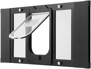 Cat Door for Window, Adjustable to Fit Window Width 31"-36", 4 Secure Lock Modes, Aluminum Frame and High-Transparency Glass, Magnetic Closure, Weatherproof Quick-Fit Pet Door for Cats, Black