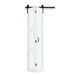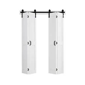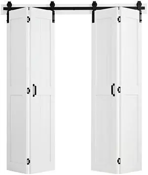 Bifold Barn Door, 72" x 84", MDF Bi-Fold Sliding Closet Doors, Hardware Kit Included, H-Frame Space-Saving Design, Pre-Assembled Panels for Bedroom, Living Room, Wardrobe and Room Divider, White