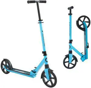 Kick Scooter for Kids Ages 8+, Teens & Adults, 2-Wheel Toddler Scooter with Adjustable Height Handlebar, Wide Anti-Slip Deck, Foldable Lightweight for Boys & Girls up to 220 lbs, Blue + Black