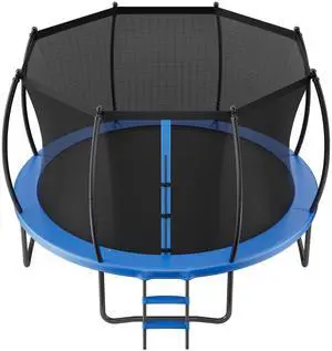 Outdoor Trampoline, 12FT Recreational Trampoline, ASTM Approved Trampolines with Enclosure Net & Thickened Pad, Max 400 lbs Weight Capacity, Anti-Rust Backyard Trampolines for Kids & Adults