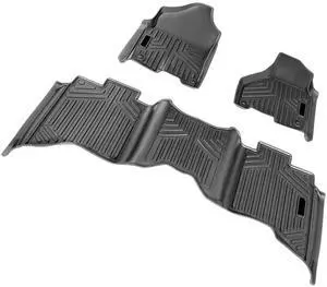 Automotive Floor Mats, Fits Dodge Ram 1500/2500/3500, Crew Cab Only 1500 Classic 2013-2018/2019-2022, 3 pcs Front and 2nd Row Liners, All Weather TPE Vehicle Floor Mats Liners for Trucks, Black