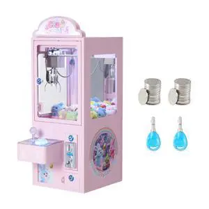 Claw Crane Machine, Medium-Sized Arcade Game Machine with Light & Sound, Adjustable Steel Claws, Precise Toy Candy Grabber Prize Dispenser Vending Toy, for Commercial Home Parties Cinema, Pink